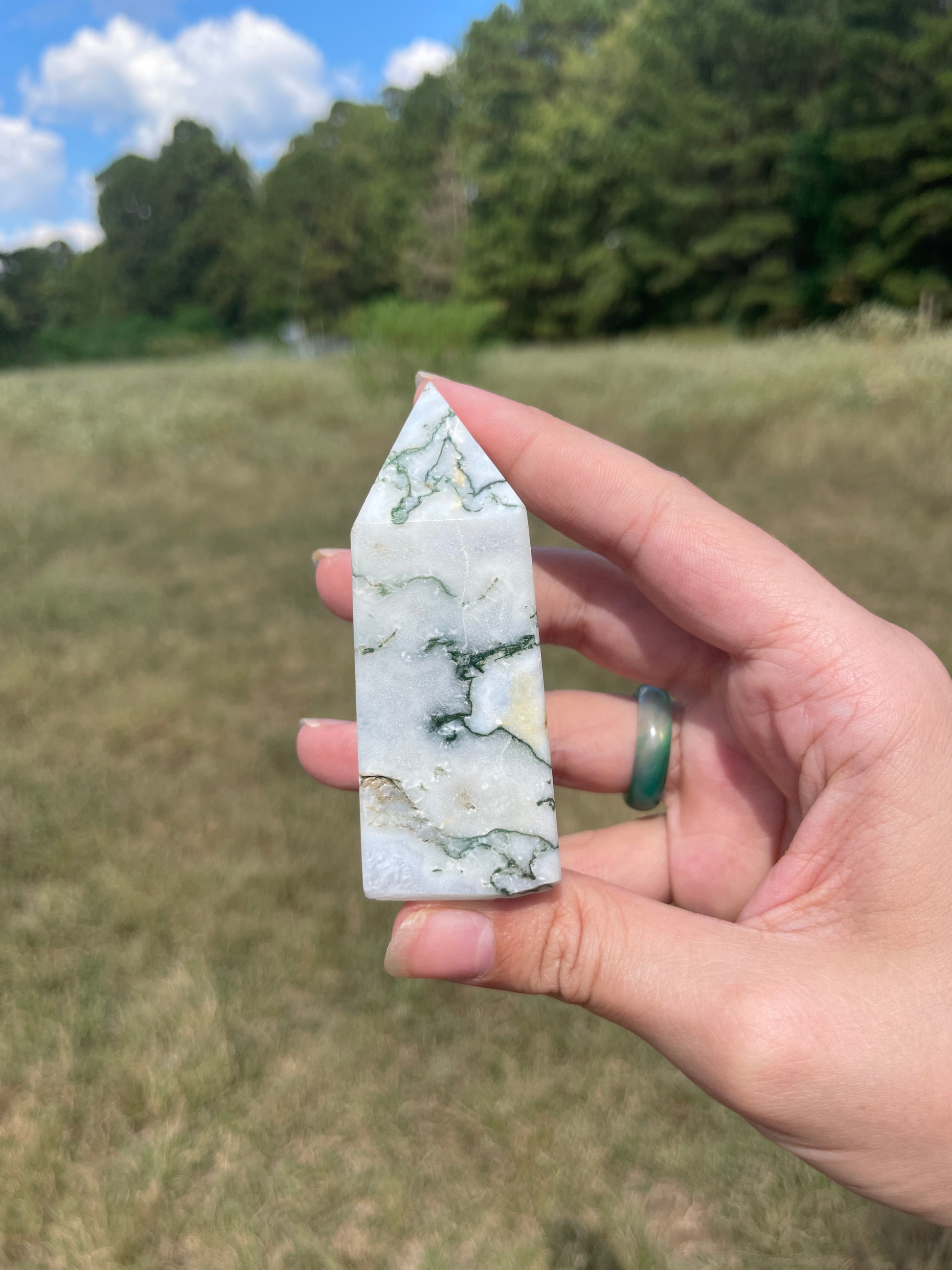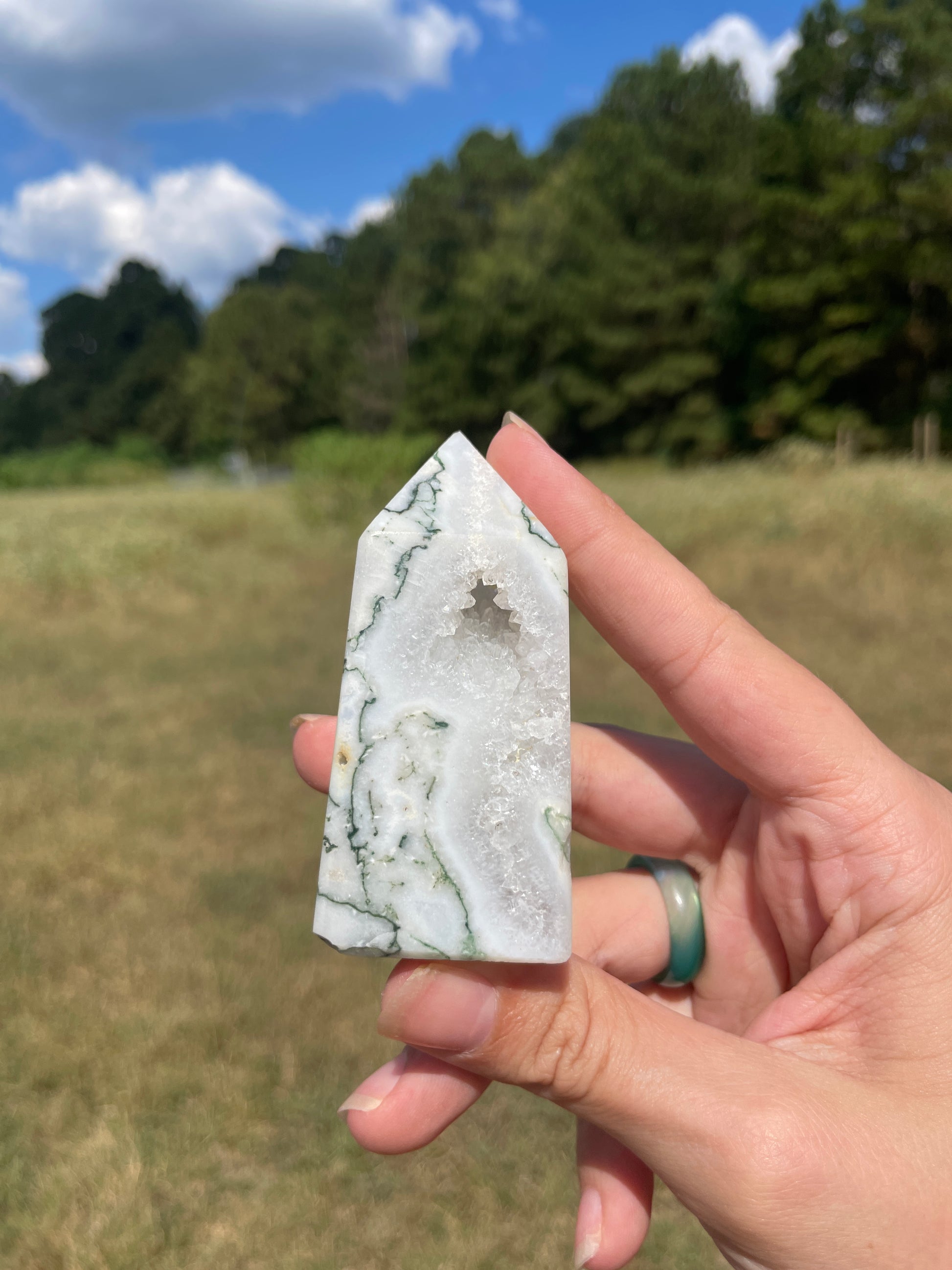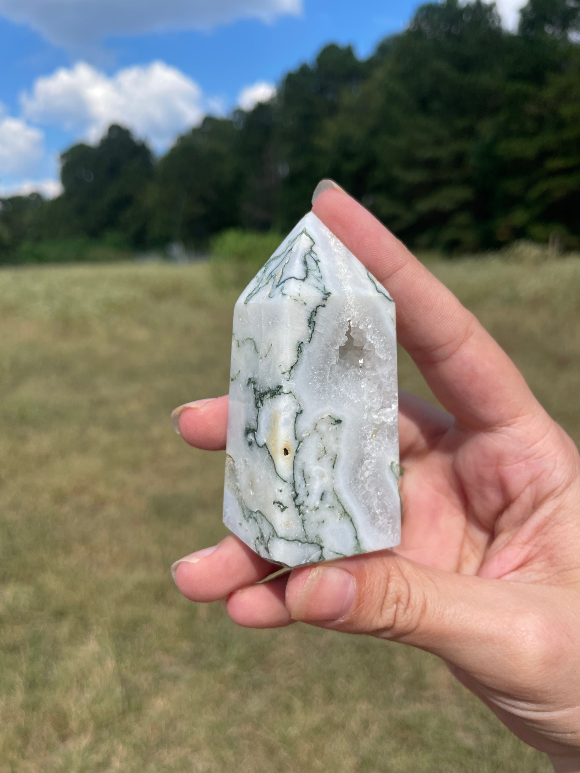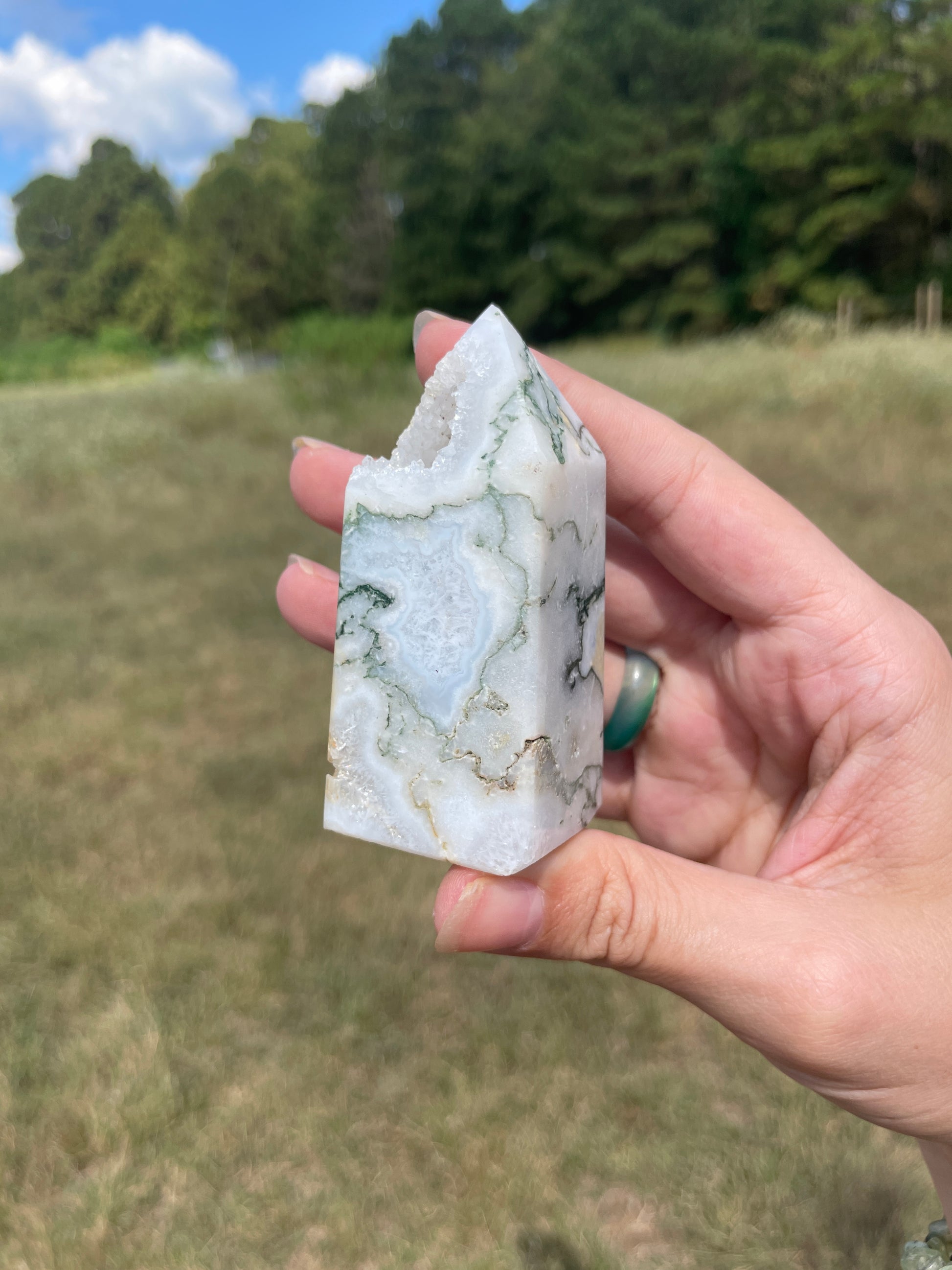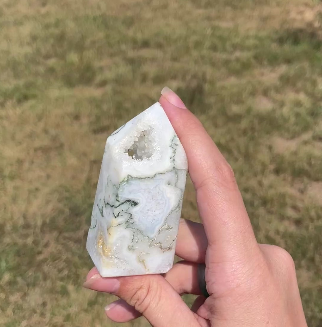 Druzy Moss Agate tower
