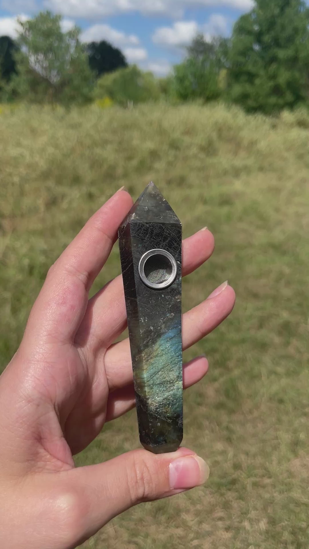 Flashy Labradorite Crystal Pipe
