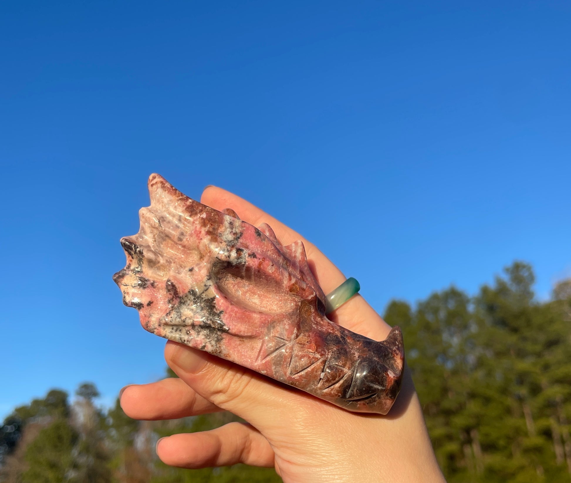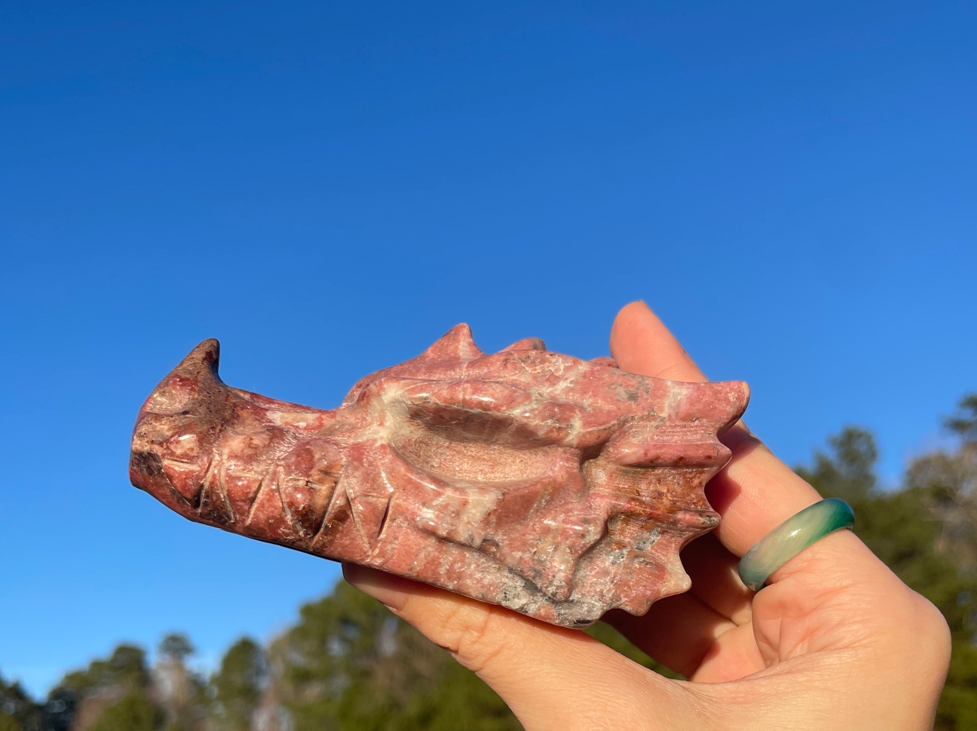 Large Rhodonite Dragon Head Carving