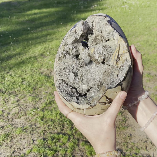 UV Reactive XXL Druzy Septarian damaged (Large Dragon Egg) w/ Stand.